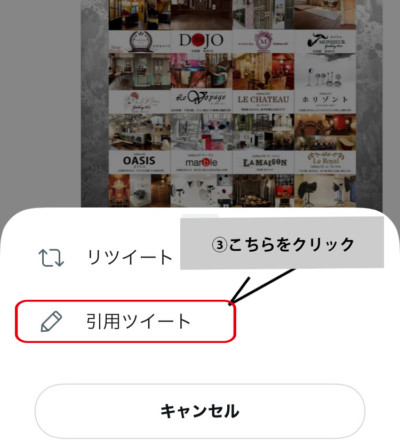 ③下記画像の手順に従ってコメント付きリポスト(旧リツイート)をお願い致します。
